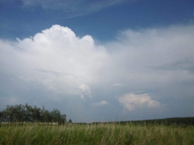 Obr. 3 a 4 Bouřky. Bude z tohoto oblaku pršet? Bouřku poznáme na dálku, avšak zpočátku se nemusí jevit nijak „dramaticky“ a výrazně. Oblak Cumulonimbus ale vždy přináší větší dešťové kapky.