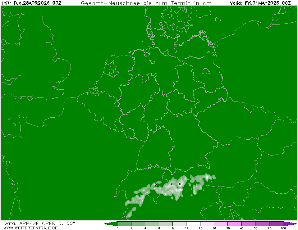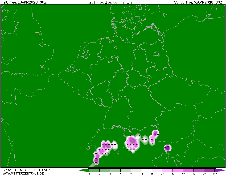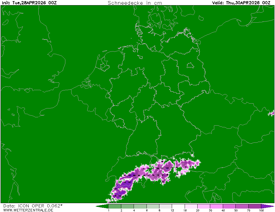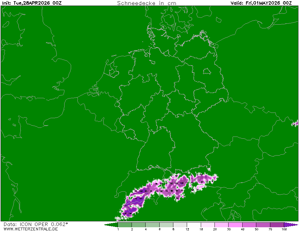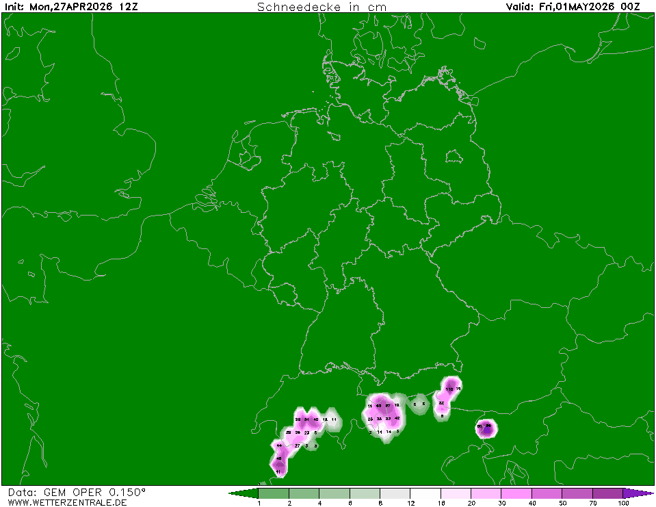 Ukazuje, kolik srážek spadne ve formě sněhu v dané oblasti za jednotku času. Jedná se o veškerý napadaný sníh od počátku předpovědi daného výstupu do konkrétního termínu bez ohledu na další faktory (ovlivňující napadaný sníh). Nejde tedy o sněhovou pokrývku.