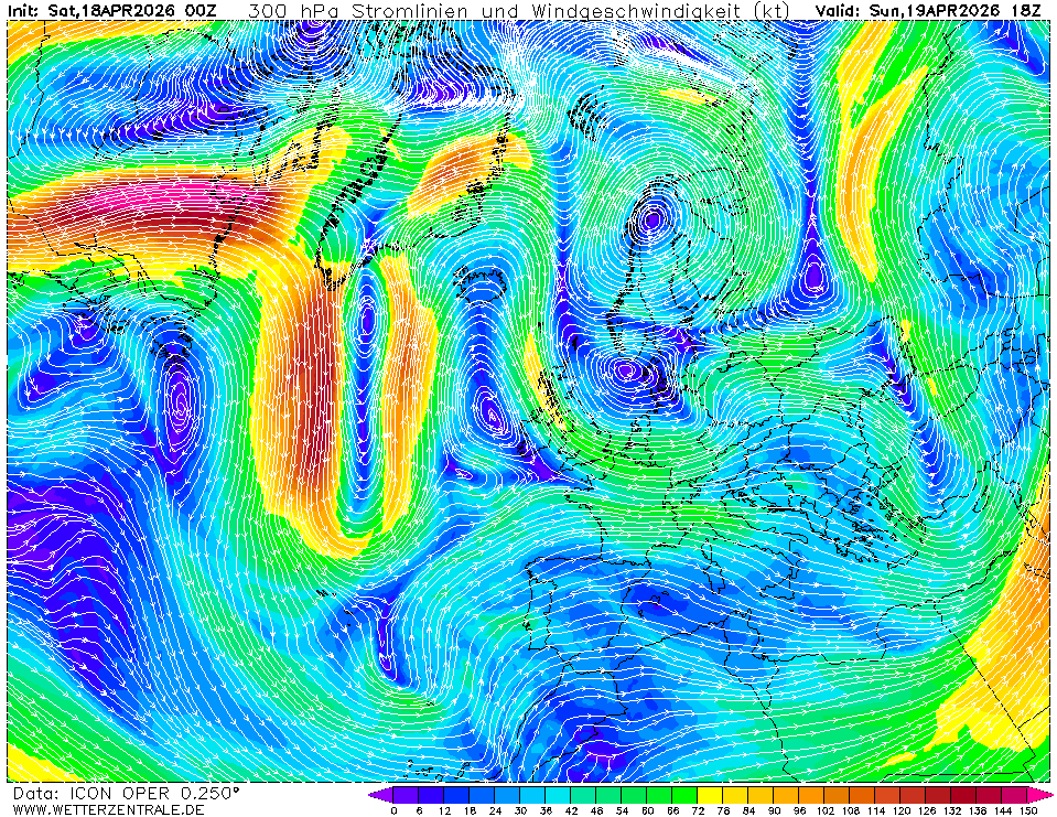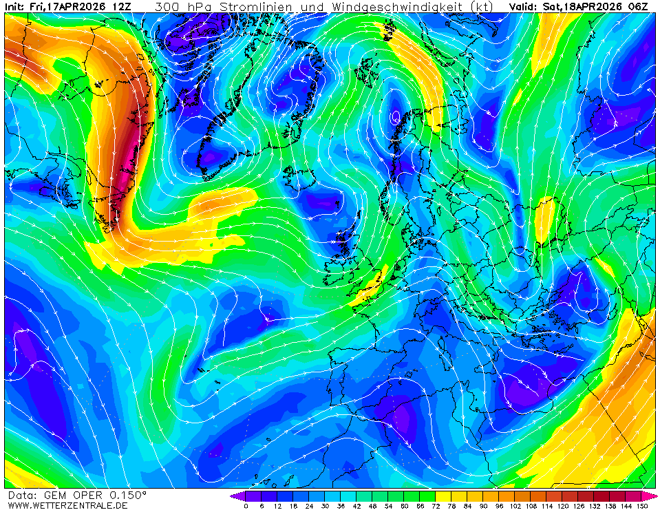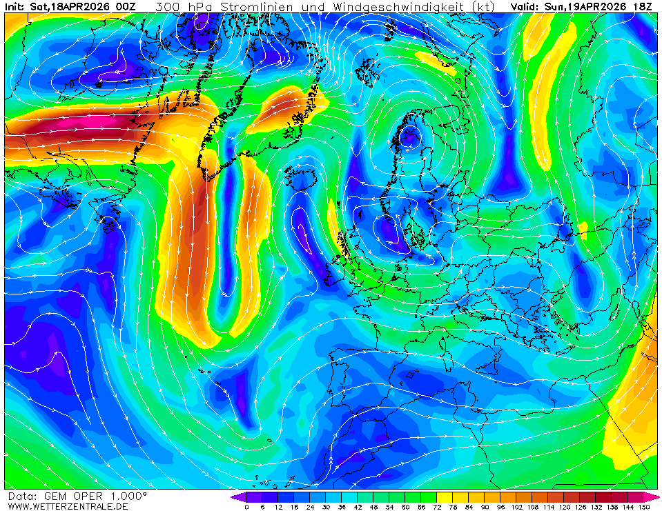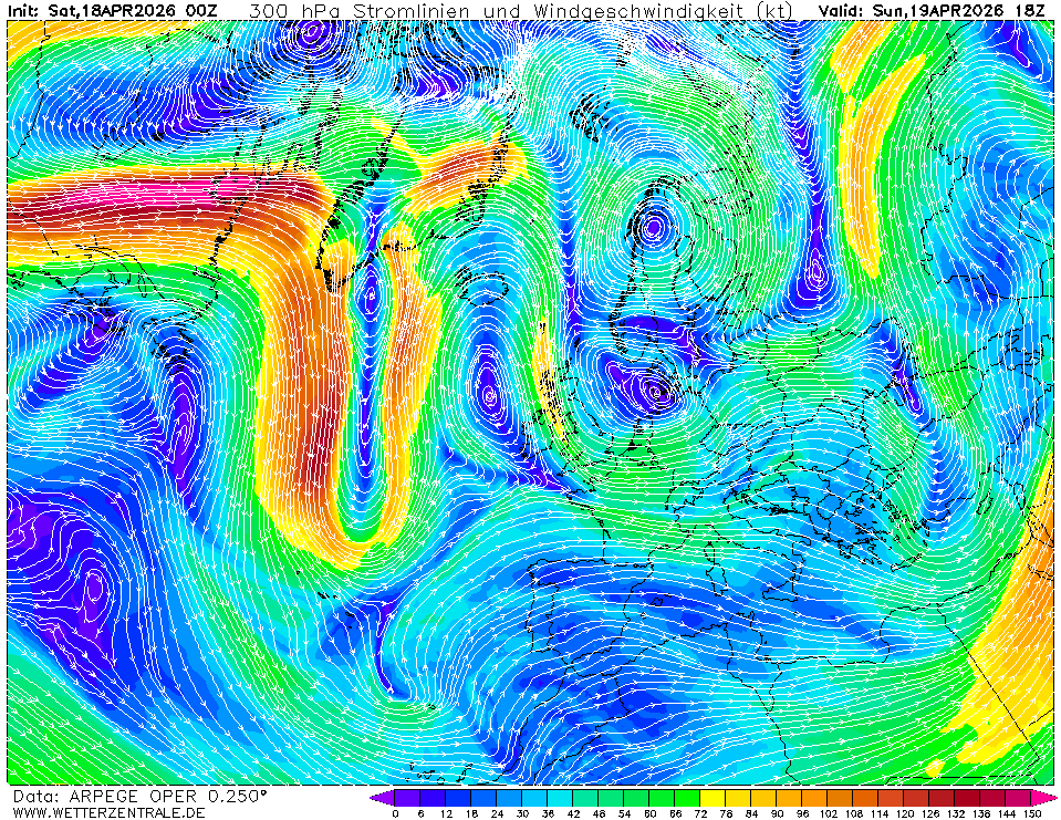 Ve velkých výškách je též předpovídán směr a rychlost větru. V těchto výškách fouká často extrémně silný vítr a jedná se o určité trajektorie (pásy) s velmi silnými poryvy větru, souhrnně nazývané tryskové proudění (jet stream). Jde o hladiny 300hPa a 200hPa (viz další box), tedy výšky mezi 9-12km nad zemí.